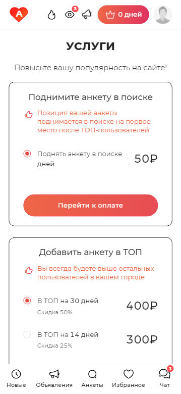 Одной из наиболее интересных возможностей сайта является публикация объявлений о поиске. Они видны всем пользователям, позволяют быстрее познакомиться с девушками или потенциальными кавалерами. В настройках можно отключить/включить звуковые оповещения на сайте, получение сообщений на указанную электронную почту или скрыть анкету при необходимости.