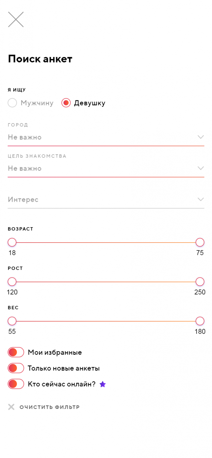 Выбрать можно сразу все варианты, чтобы увеличить количество потенциальных знакомств.