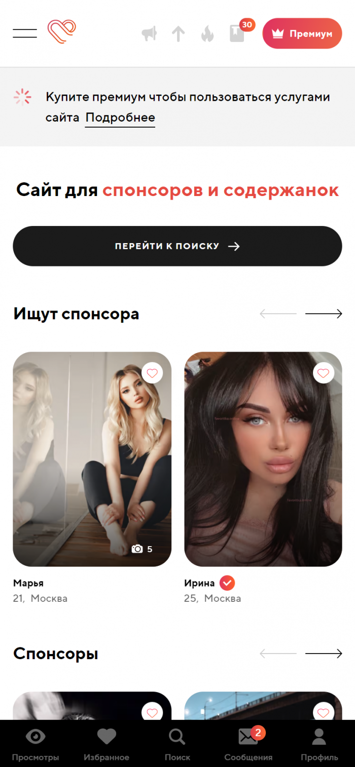 Сайт знакомств Favoritka.Online — сервис, который предлагает пользователю найти спонсора или содержанку. Пользователей можно разделить через параметры поиска на 2 категории: