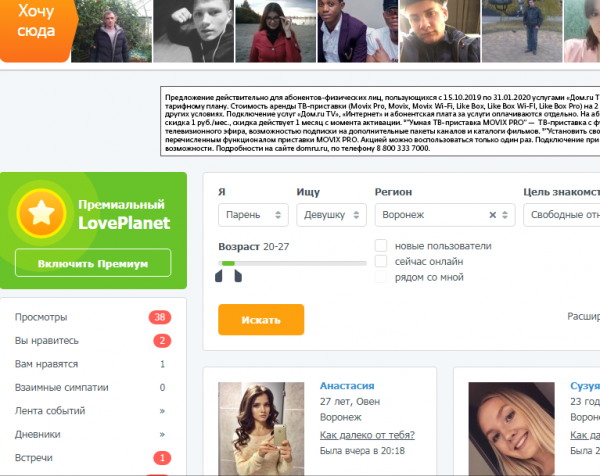 Знакомства на LovePlanet регулярно сводят тысячи пар. Ежедневно количество зарегистрированных пользователей растет, что позволяет постоянно просматривать новые анкеты. Привлекает и разнообразие интерфейса, что делает проект похожим на социальную сеть.