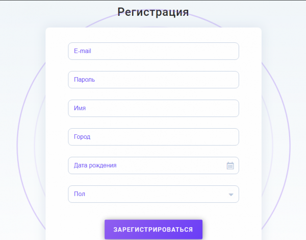 - Указать e-mail, пароль, имя, город, дату рождения и пол.